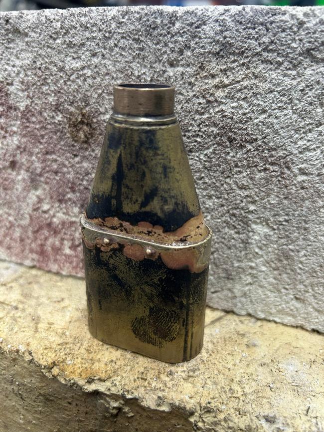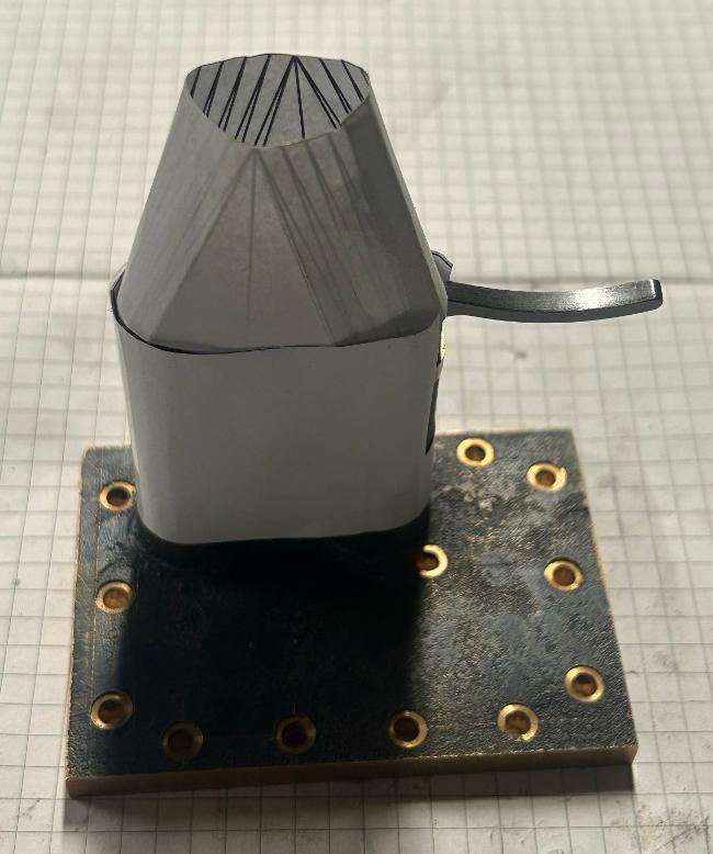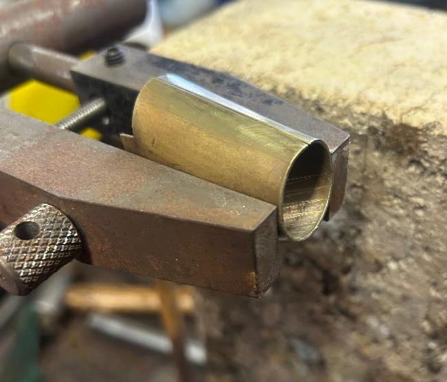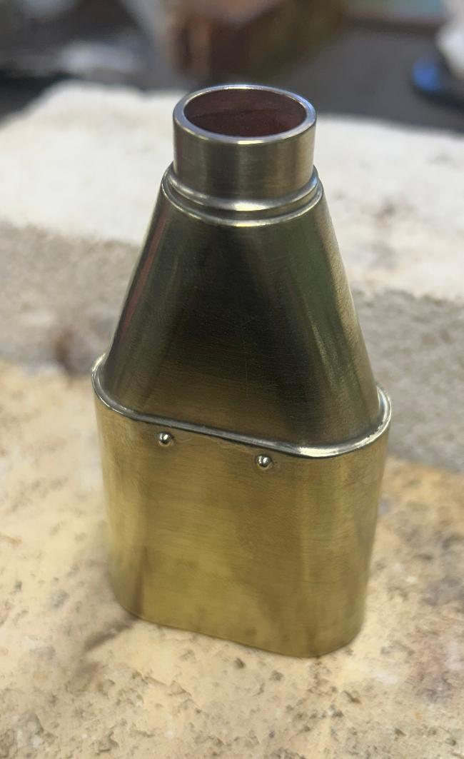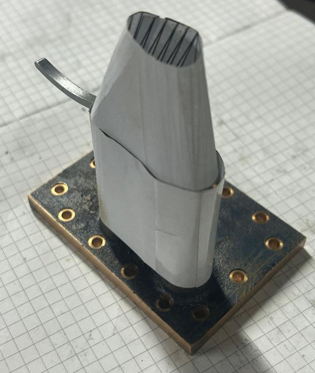 Checking fit of safety valve cover using a folded paper template. Which can then be used to mark and cutout the brass sheet to manufacture the cover.
