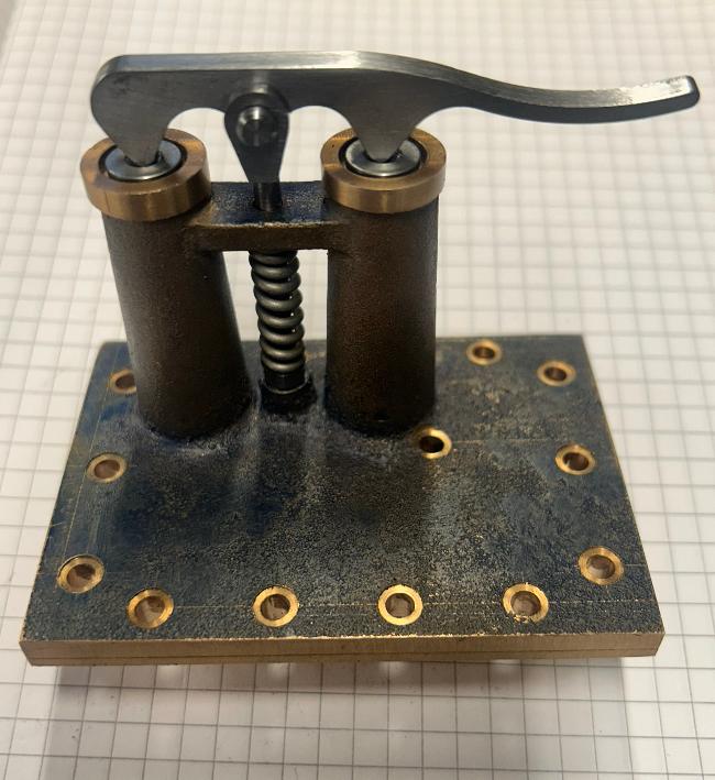 The Foden safety valve casting, although looks like the drawing, once finished, dimensionally this isn't the case. The distance between the stack centres is dimensioned as 1 1/8" on the drawing, but the actual distance to be correct and central on the casting needed to be 1 3/16". This had a knock on effect. Firstly the bolt holes had to be adjusted to enable a 4BA nut to fit at the bottom of the stacks. The stacks were set 1/8" and 1/32" off true dimensions. Secondly the cover plate was machined with minimum clean up to accommodate these adjustments . Even with these adjustments a 4BA one size smaller hexagon nut will have to be used.